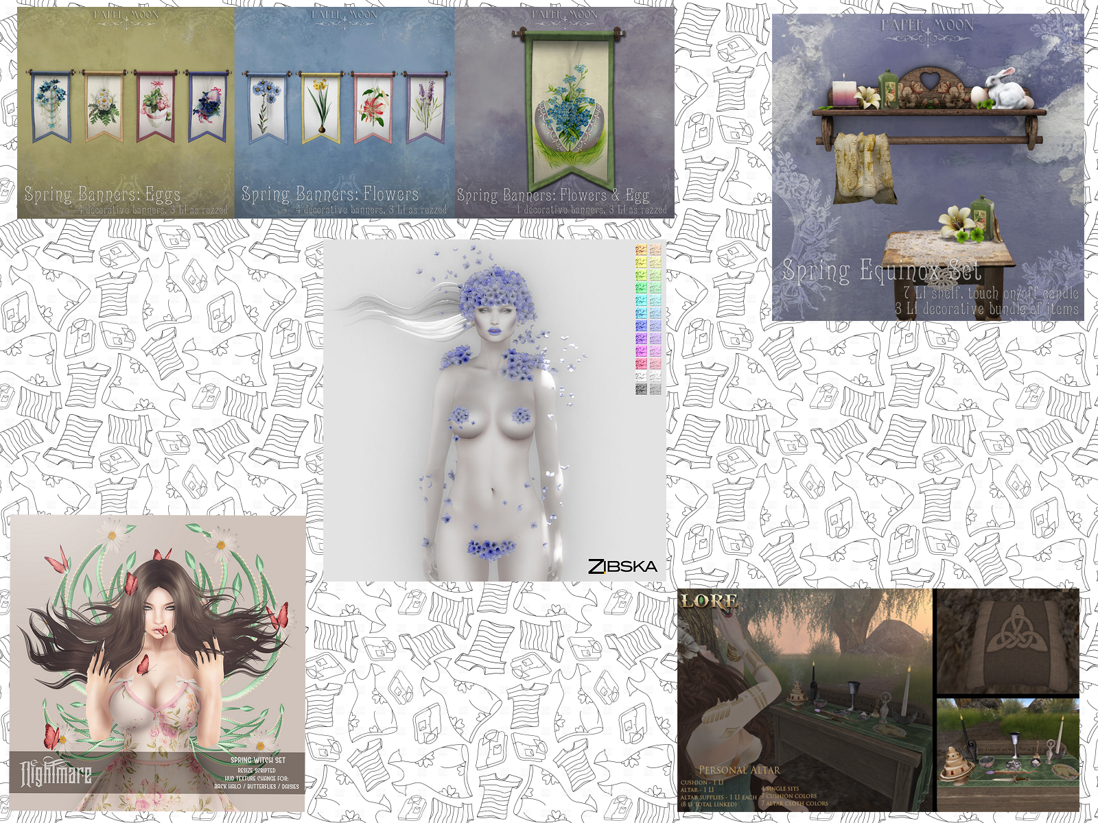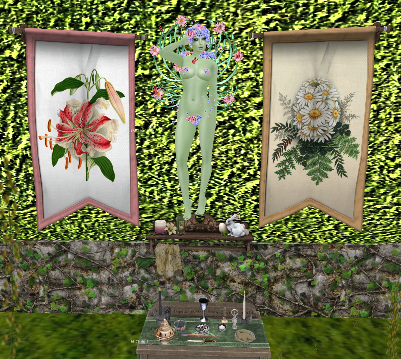 The decor items at the Ostara’s Altar are so well crafted! The Spring Banners are from Paper Moon. I only used two of the amazing 8 designs. There is one as a gift in the Egg Hunt too! The Spring Equinox Shelf is also Paper Moon‘s creation. So so much detail!