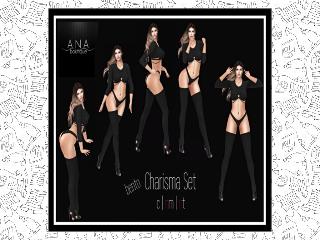 Finally, my pose is once again from Ana Boutique. Part of the Charisma Collection, I am starting to go to again and again for great fashion shots. There is a detail picture below of all the gorgeous poses that are part of this set.